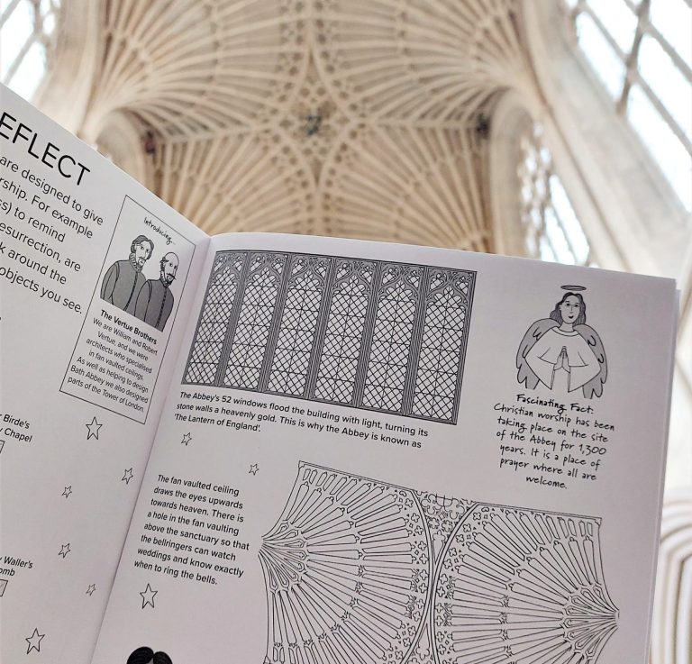 Details of the Bath Abbeys beautiful fan ceiling in their Factivity book.