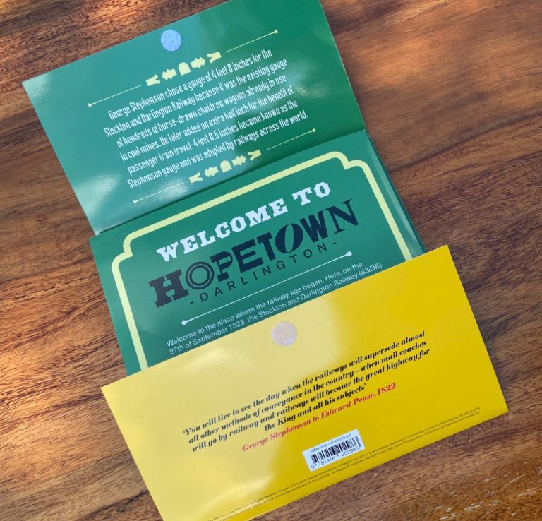 The guide has dual-purpose – one side to guide the visitor during their exploration of the museum – while the reverse charts the history and importance of the Stockton and Darlington railway.