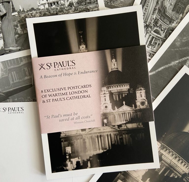 A presentation wrap band is a cost-effective way to present your postcards. For example, our St Paul's 'Wartime London' pack, produced to commemorate VE80.